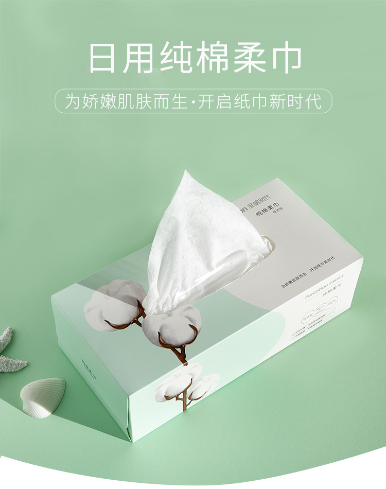 全棉时代 盒装居家洁面纯棉柔巾 纯棉抽纸巾洗脸巾擦脸巾 20*20cm 100片/盒-经济型